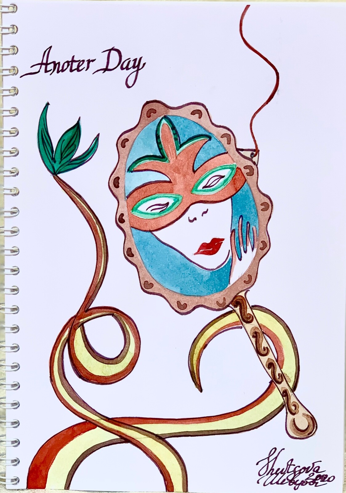 This art book has five pieces of original watercolor paintings performed on a small format paper (8 x 5,5 inches). Artworks have spiral binding with lay flat pages and film cover.